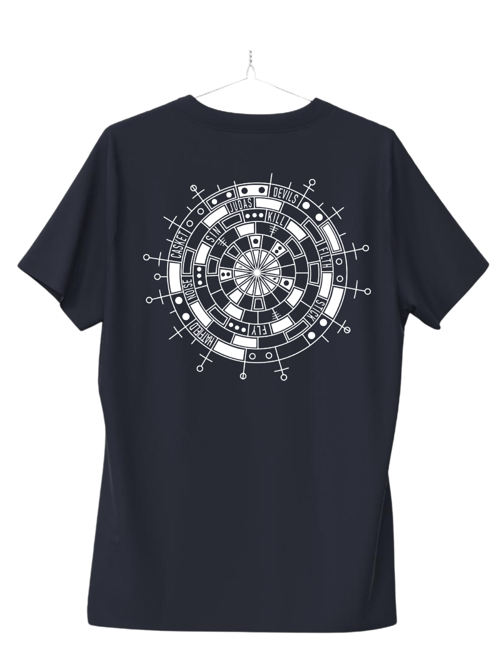 Black Short Sleeve T celebrating the 20th anniversary of Byzantine's debut album "The Fundamental Component" featuring the bands original logo on the front and the alien circle with song titles on the back. Made from 50/50 Polyblend
